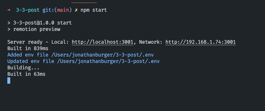 If you change values in your .env file, the Remotion Preview will reload and pick them up without having to restart.